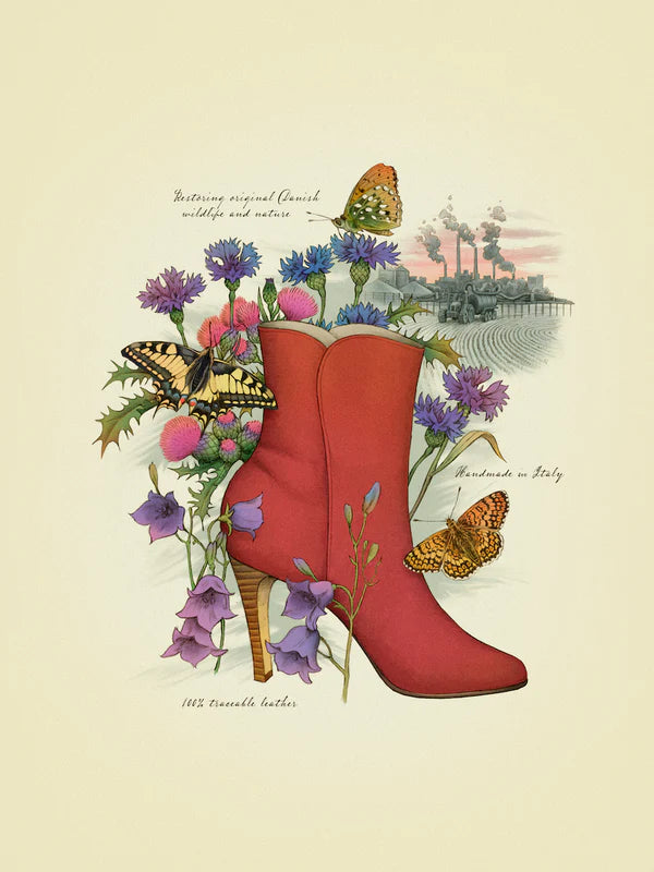 With the "Respect the Butterfly" campaign in 2021, we raised DKK 42,500 to support a project on biodiversity in collaboration with Michael Kjerkegaard and Vejle municipality. For many years, Michael has worked with holistic grazing, where the cows graze in a system that gives the soil time to grow wild, and new plants and flowers a chance to emerge.