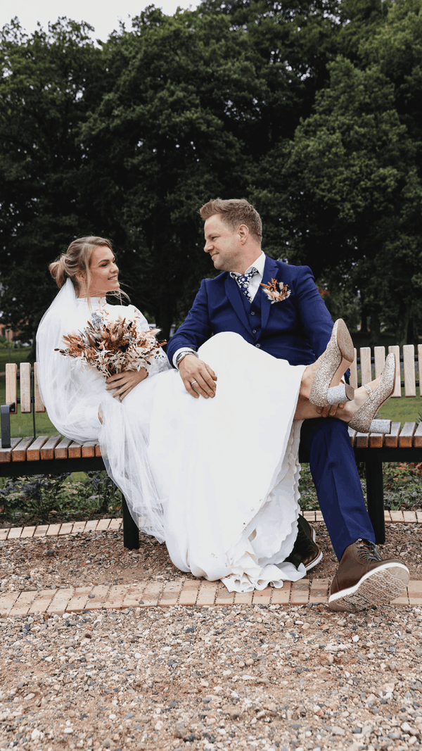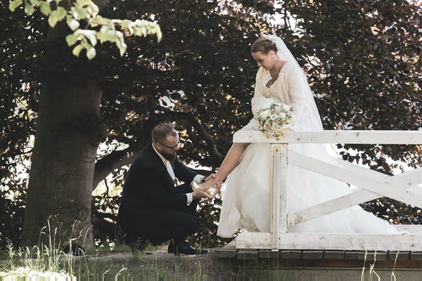The very first Roccamore wedding shoes were created for Frederikke and Michele's 2016 wedding in Southern Italy. The beautiful White Edith in nappa leather with silk laces is based on our very first version of Penny.