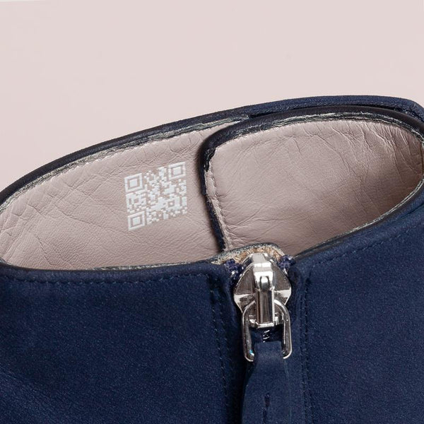 An elegant and classic ankle boot handmade in traceable nubuck leather as part of our collaboration with Spoor. Foxy Midnight is a versatile dark blue version of our classic Foxy boot with a 6.5 cm heel.