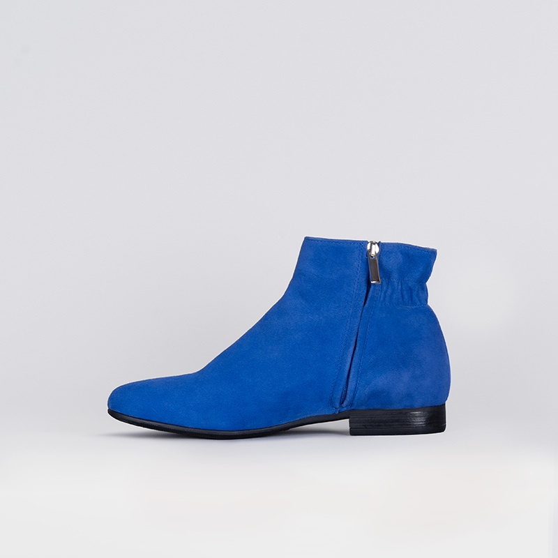 The design team's dream of creating a glove-like ankle boot that is chic for everyday wear and references the discontinued Anna boot has come true with the brightly colored Jenny Iris and the Jenny family. The flexible suede boot has a 1.5 cm staccato heel and fits both wide and narrow ankles due to the elastic detail. The sole is made of rubber, which is ideal for damp surfaces and ensures flexibility. The insole is as you know it from sneaker boots, an antiperspirant leather sole with support for the heel and arch. Suede gives 0.5 cm, but the fit is best suited for normal to narrow feet. This color is limited edition with only 120 pairs.